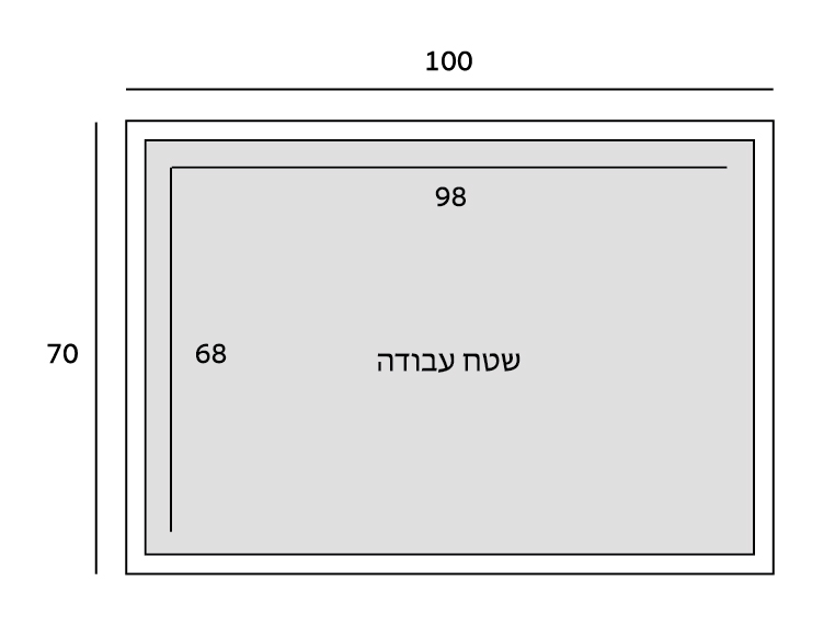 - שטח עבודה מומלץ בפועל: 98×68 ס״מ